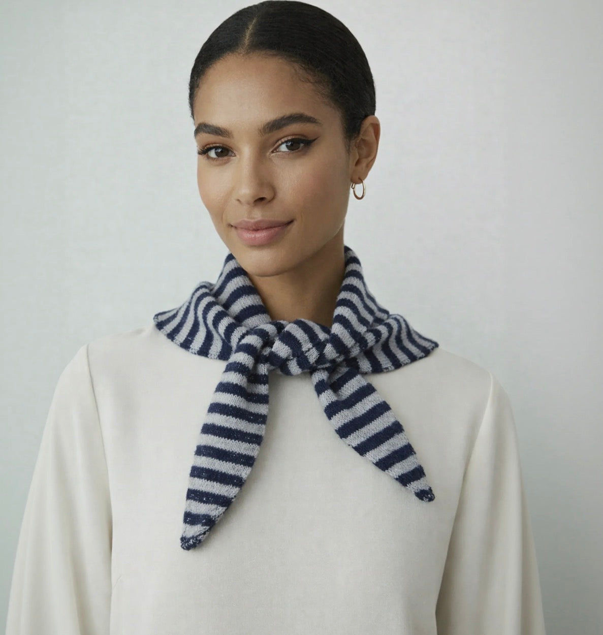 Available in a range of fresh hues and classic stripes, these scarves are the perfect finishing touch for both casual and elevated outfits. The compact shape makes them easy to wear year-round, while the cozy knit texture adds warmth without bulk.