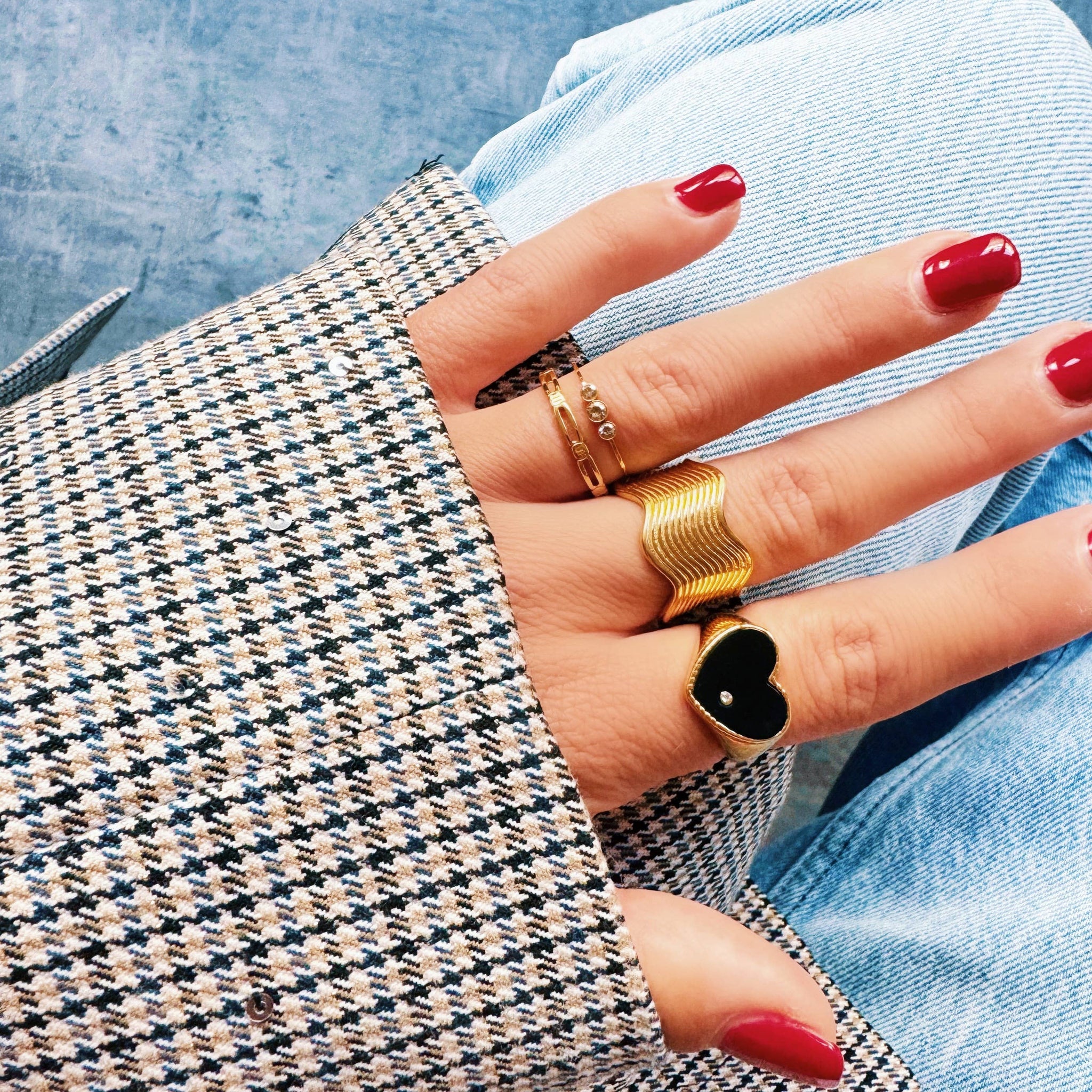 We absolutely love this ring. Wear it alone or combine it with other rings for a fun mix. Add it to your cart now! - Made of stainless steel, so it won't tarnish! - This gold-colored steel ring is available in standard size 7 (17.3).