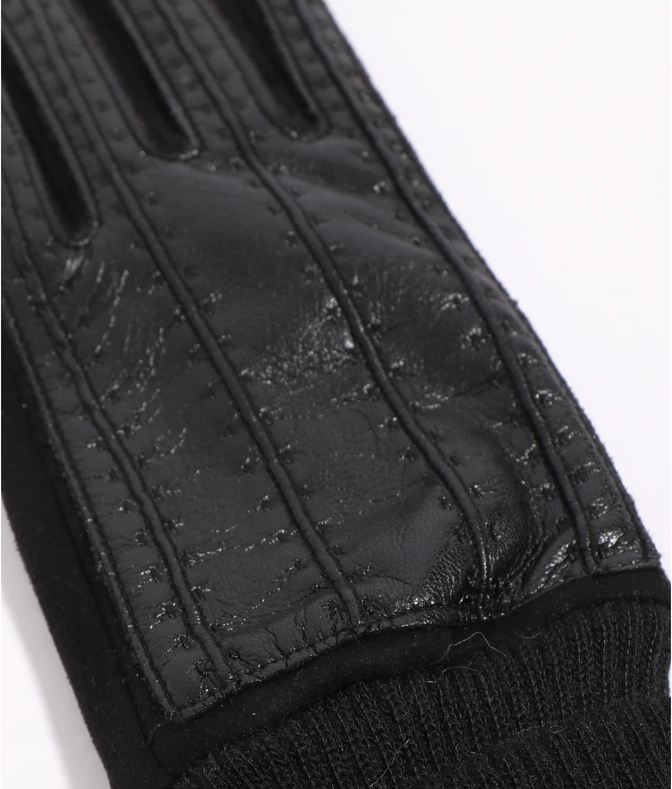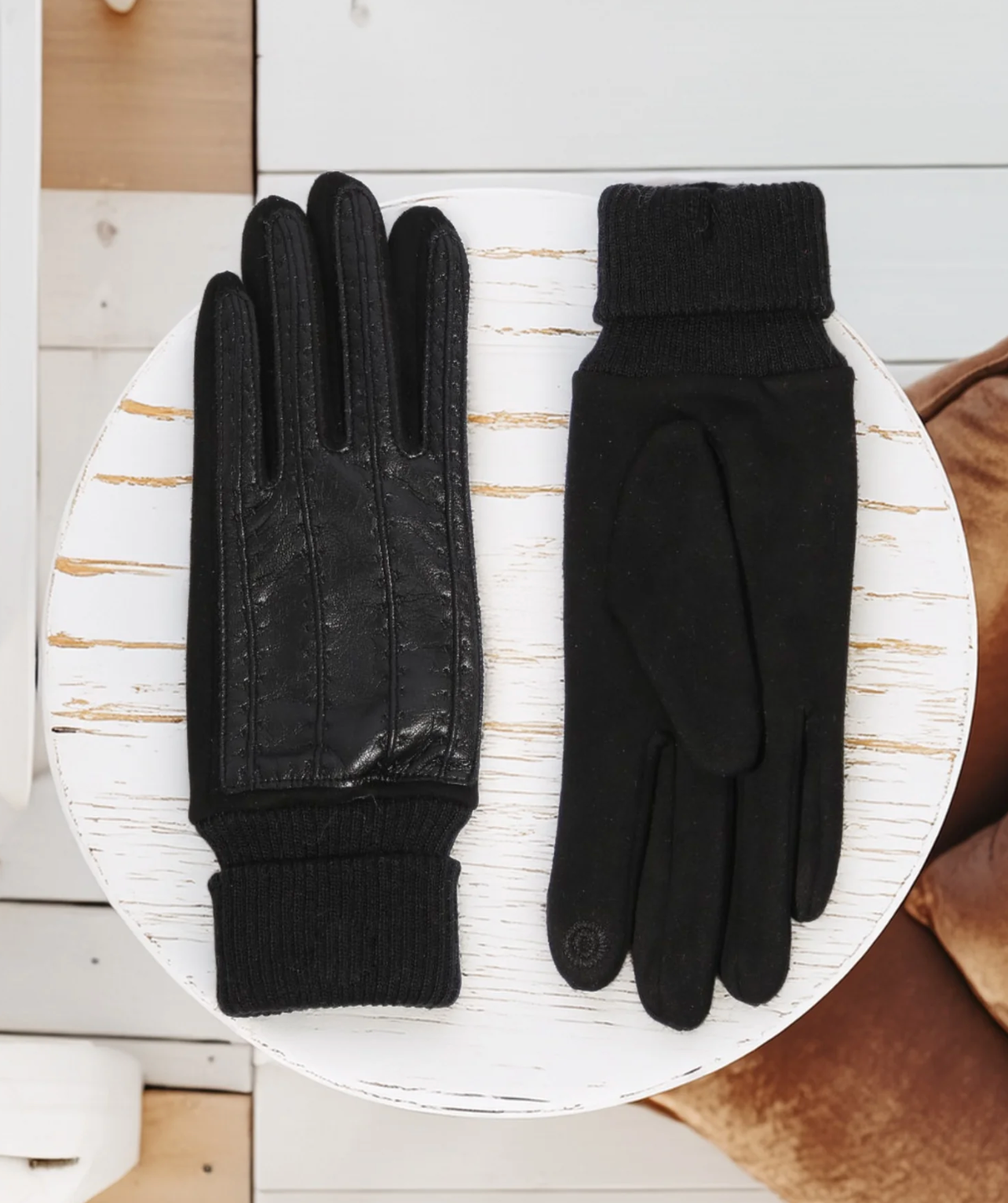 Stay stylish and warm with our Black Charleigh Gloves. Designed with faux leather tops and a faux suede glove, these gloves offer a unique and versatile look. The roll cuffs not only add a touch of elegance but also provide extra insulation for added warmth. Fully lined and one size fits all, these gloves are perfect for any fashion-forward individual looking to make a statement this season.