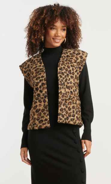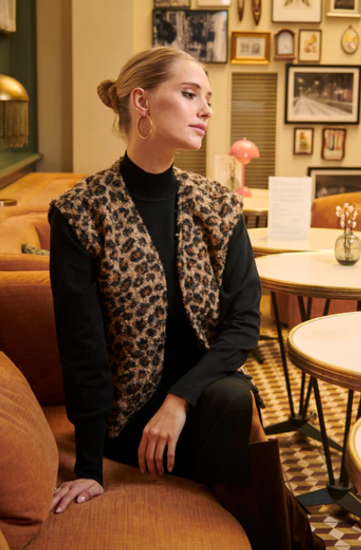 Add a stylish statement piece to your fall wardrobe with this camel and black women's coat from Smashed Lemon. Crafted from a soft bouclé fabric with a striking animal print, the coat has a straight fit that falls just above the knee. The classic lapel collar and concealed button closure create a refined look. Thanks to its loose silhouette, this coat effortlessly combines comfort with feminine elegance – perfect for chilly days and fashionable looks. Key Points: • Bouclé coat with a camel and black animal print for an on-trend, luxurious look • Concealed button closure and classic lapel collar for an elegant finish • Knee-length, loose fit for comfort and style this fall