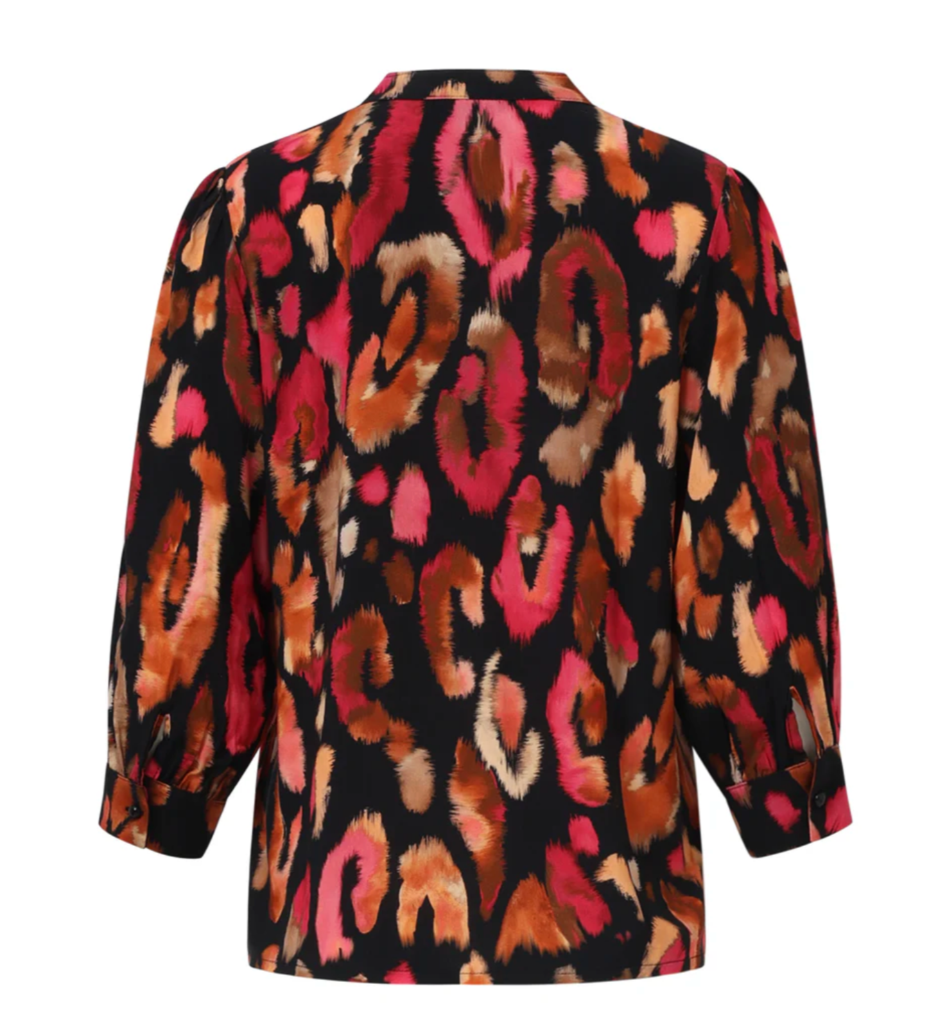 Unleash your wild side with this top in a playful black and multicolor animal print. This stylish top is made from 100% viscose, creating a natural, airy, and comfortable feel. The V-shaped paneled neckline adds a refined, feminine touch. The sleeves combine the best of both worlds: slim, fitted long sleeves with elegant 3/4-length puff sleeves for a trendy and fashionable look. The cropped length and relaxed fit make this top ideal for a casual-chic look with flair. Key features: - Striking multicolor animal print for a playful look - V-shaped paneled neckline and puffed sleeves for an elegant look - Made from 100% viscose with a relaxed fit and cropped length