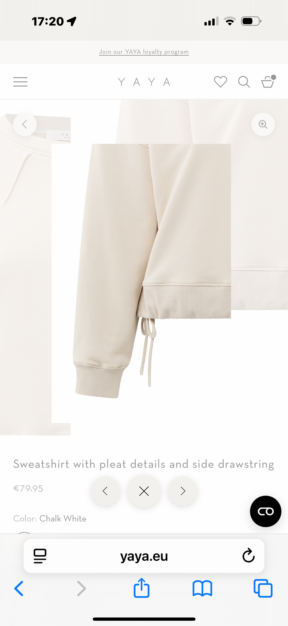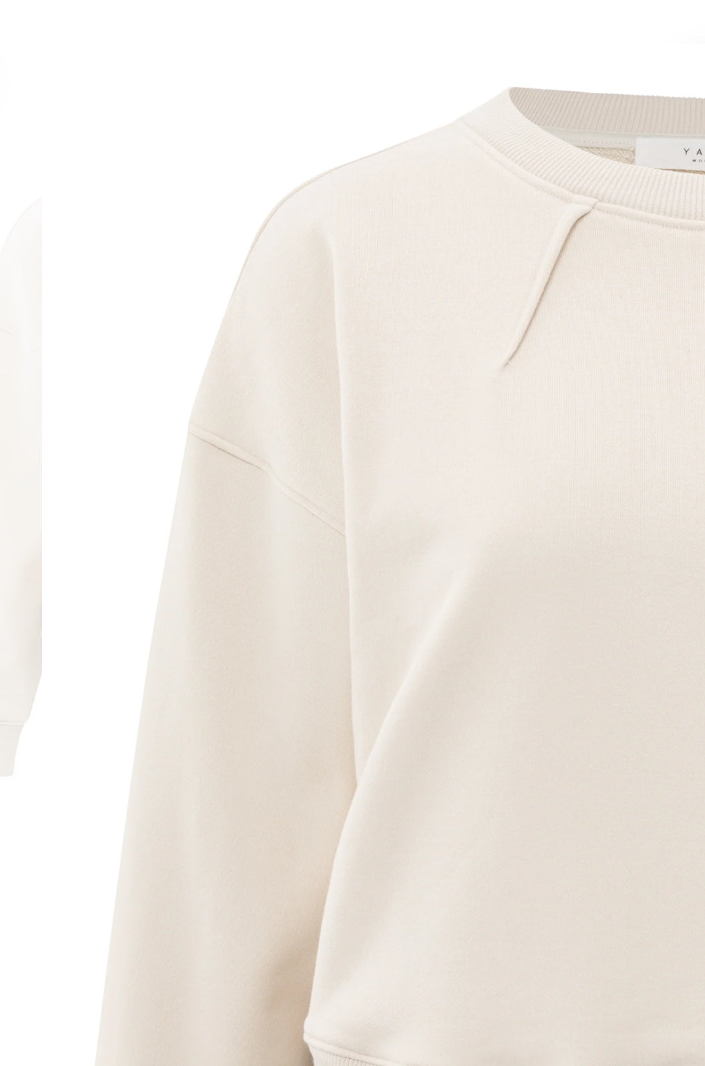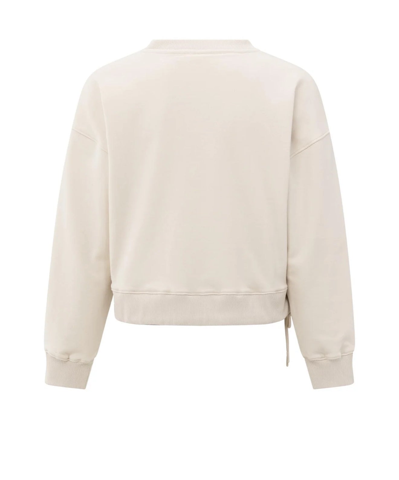 This soft sweatshirt features a loose fit, dropped shoulders, and a round neckline. Two subtle pleat details near the collar add a refined touch, while the side drawstring at the hem allows for a slight adjustment in shape. Finished with ribbed cuffs for a casual yet elegant look.