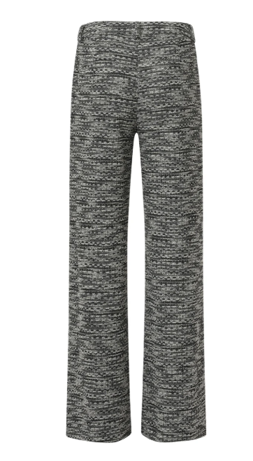 Comfortable black and white women's trousers, crafted from a premium fabric with a subtle tweed-like texture for a stylish and luxurious look. The loose fit with wide legs creates a feminine, elegant look that pairs perfectly with a formal blouse or casual top. These trousers are ideal for both casual and business outfits. Key features: - Plain black and white color with refined tweed-look fabric - Loose fit with wide legs for optimal comfort - Perfect for pairing with elegant tops for a casual-chic look