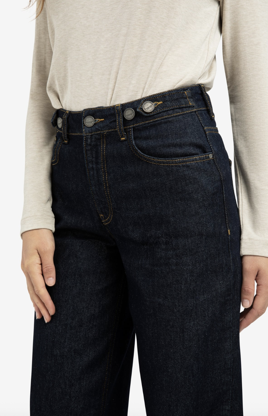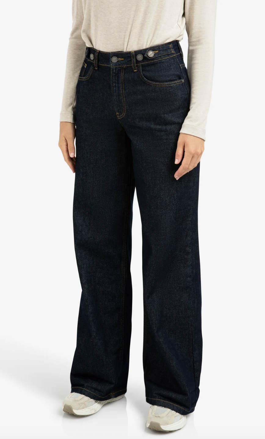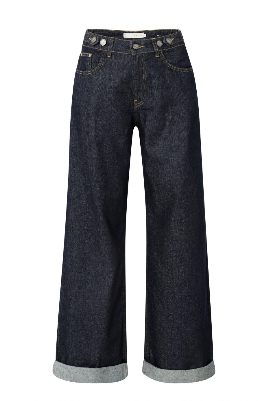 Crafted from sturdy denim, these loose fit jeans feature a high waist, straight legs, and a rolled-up hem for a casual finish. Designed with classic five-pocket styling, contrast stitching, and a double button closure. A versatile piece that pairs effortlessly with both blouses and T-shirts for a laid-back yet polished look. Inseam length: 32. The model is 178 cm and wears size 36.