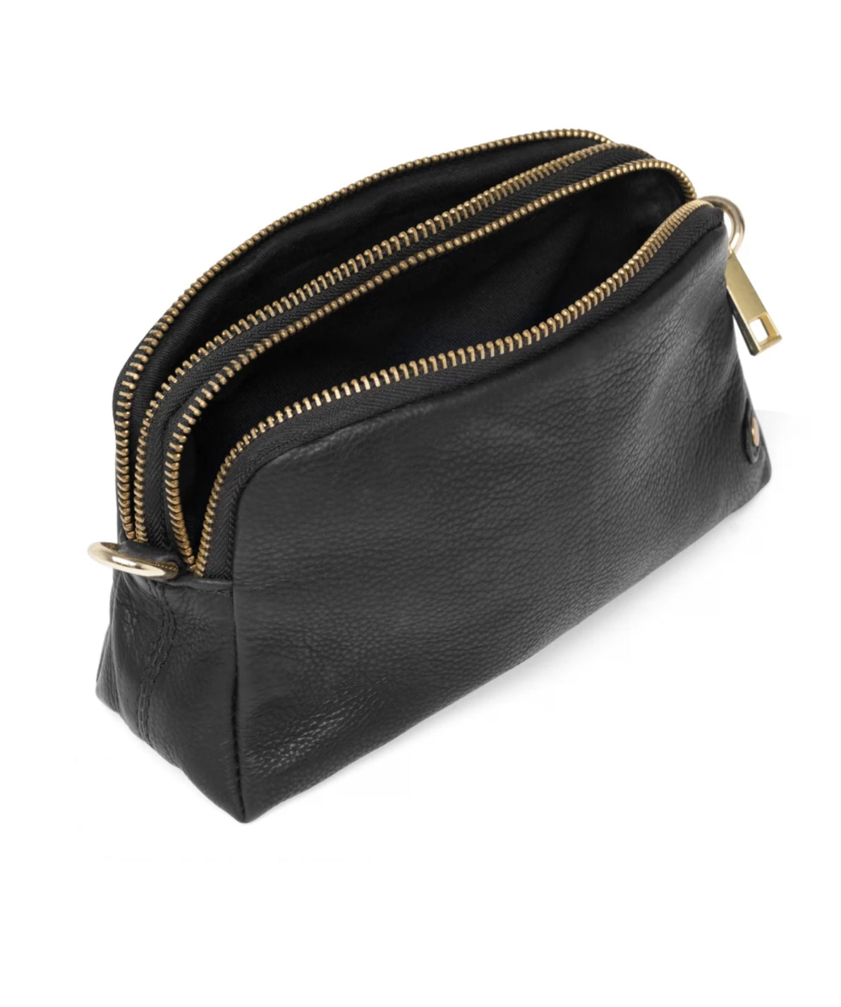 The Depeche Black Clutch is a versatile accessory made from butter soft calfskin. With two compartments and a smaller zipper pocket, it has plenty of room for essentials. Use the included wrist strap for a chic look. Made with 100% calf leather, this timeless clutch is a must-have for any wardrobe. H: 11,5 x W: 19 x D: 7 cm.