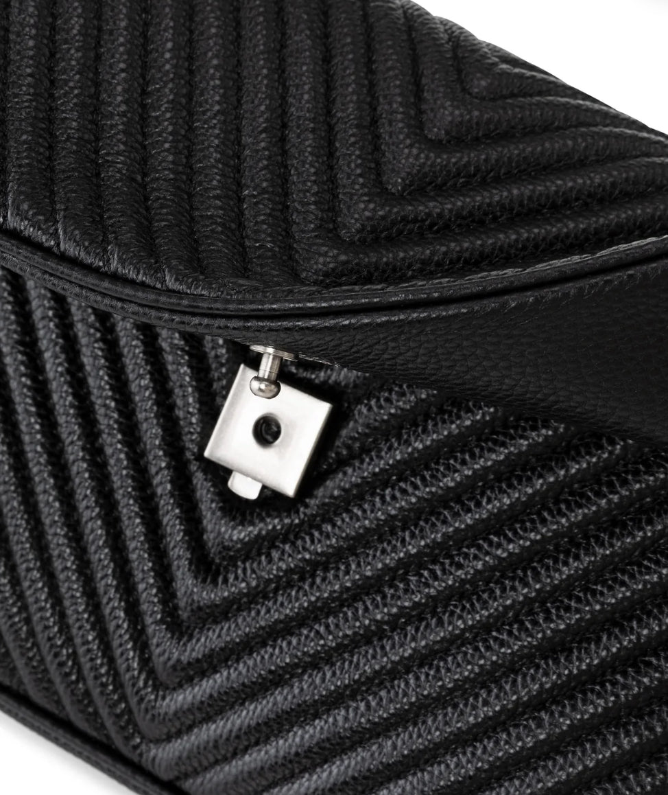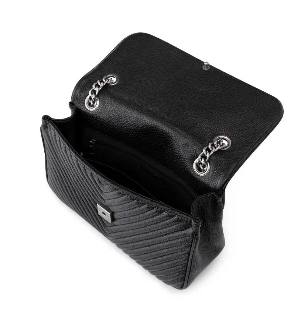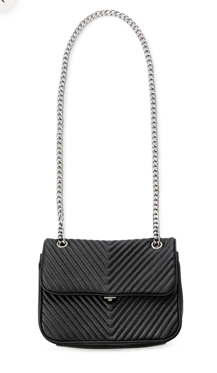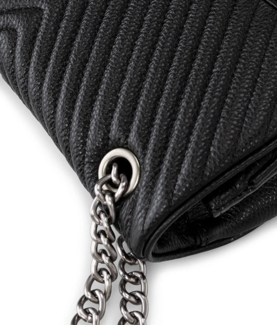 An elegant leather shoulder bag featuring a striking chevron stitch detail. Finished with a sturdy metal chain and magnetic flap closure. Compact in size yet spacious enough for your essentials – perfect for daily wear or a night out. A stylish finishing touch to elevate any outfit.