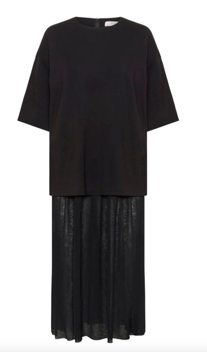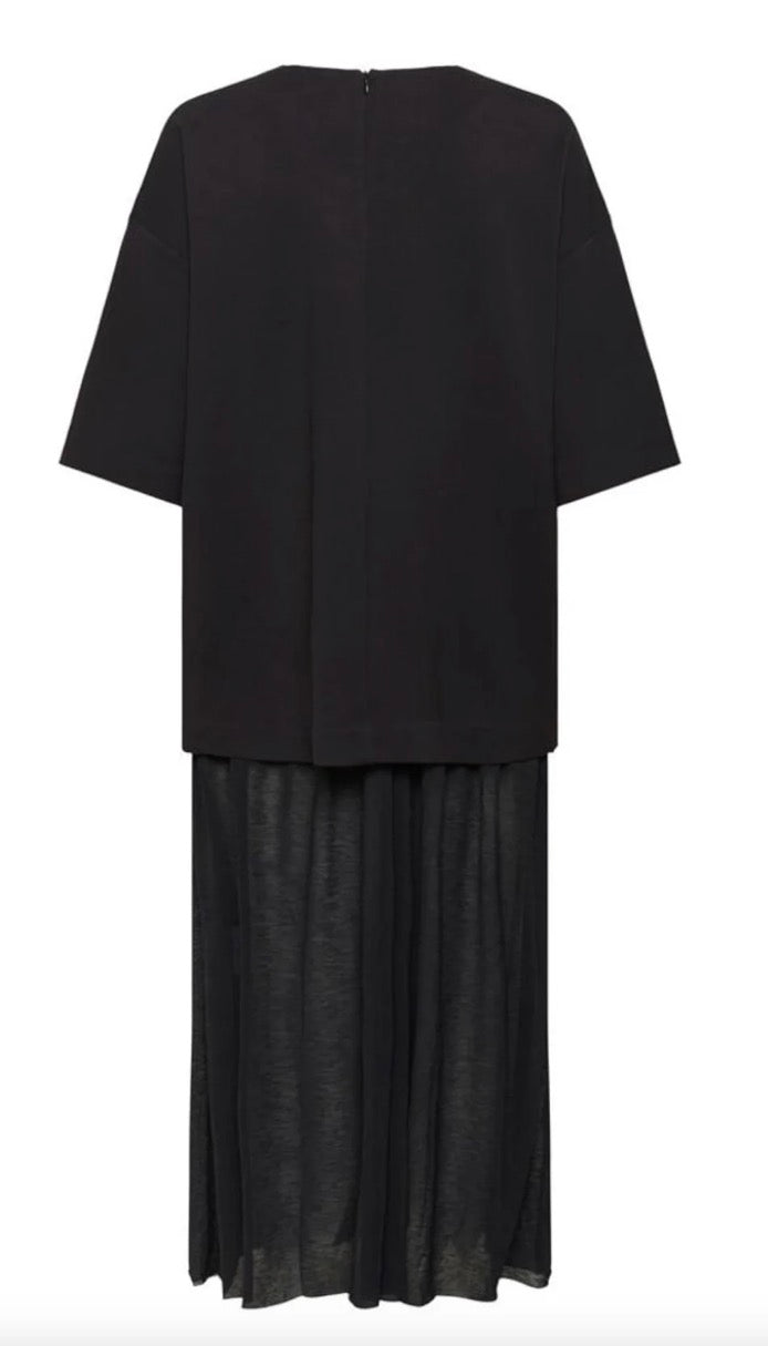 This is elevated simplicity at its best. The subtle contrast between the softly structured upper and the lightweight, draped skirt creates depth without disrupting its minimalist appeal. Easy to throw on yet undeniably refined, it’s a versatile choice for busy weekdays, relaxed evenings, or understated weekend dressing.