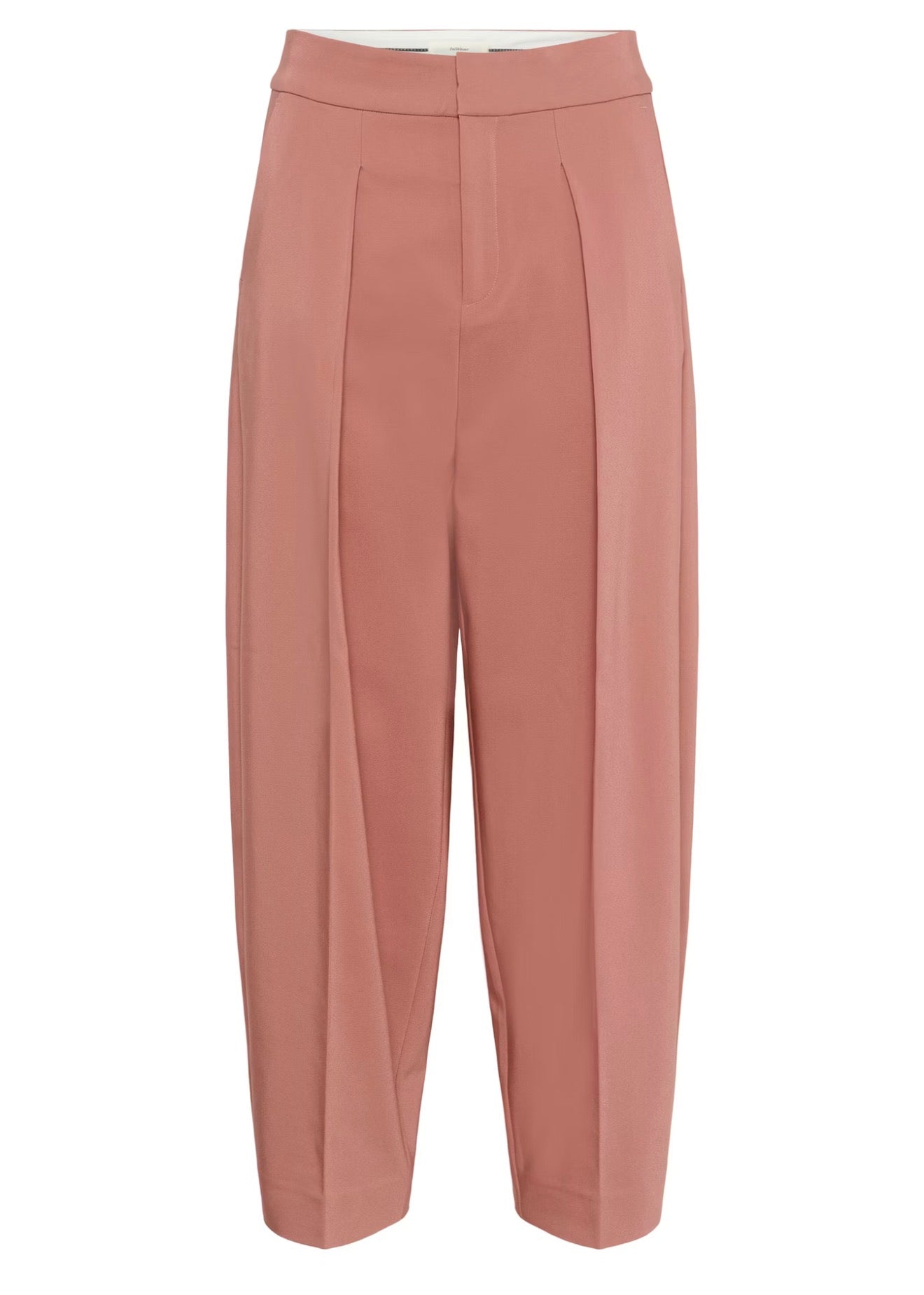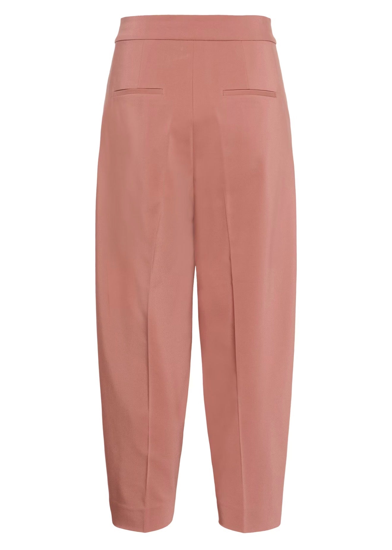 Tailored women's trousers feature a relaxed fit with tapered cropped legs, pleated front detail, and high waistband for comfort and versatile, modern style—perfect for work or casual wear.