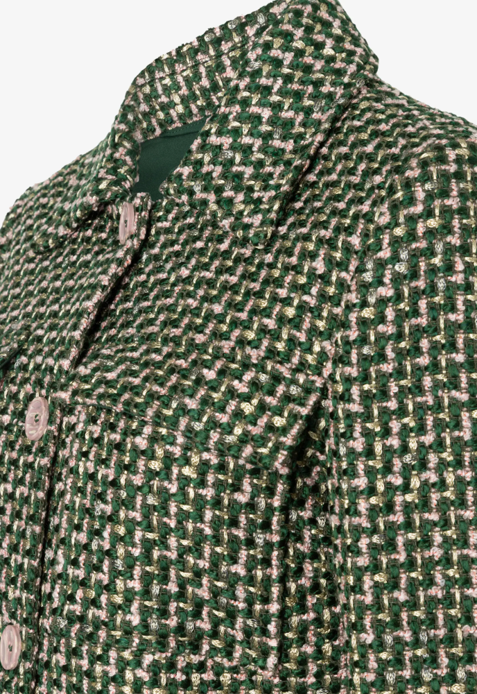 This boxy short blazer from MORE & MORE in a green bouclé texture is stylish, modern, and versatile. Style it ladylike with a pencil skirt and heels, or casually with faded jeans and sneakers for a truly on-trend look.