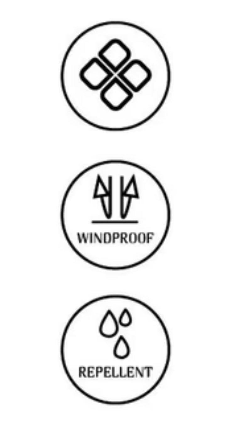 Functional, sporty, feminine jacket, water-repellent.  With detachable hood with wide tone-on-tone drawstrings. Back panel with logo tape.  Side pockets closable with tone-on-tone zippers. Cuffs adjustable with press studs. With closable inner pocket.