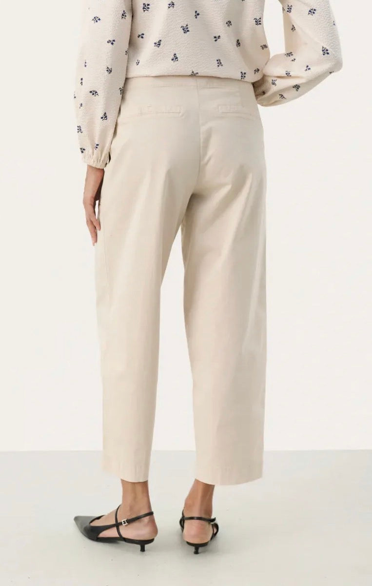 Discover timeless sophistication with the Part Two Solbritt Trouser in navy pinstripe. Crafted from a luxurious wool blend, these trousers deliver both style and wearability. The high-waisted cut flatters your frame while the cropped, wide-leg silhouette offers contemporary flair. Delicate pinstripes add refined detail that elevates any outfit. Transition seamlessly from boardroom to brunch—pair with crisp shirts for polished professionalism or cosy knits for effortless weekend elegance. A versatile wardrobe essential that works as hard as you do.