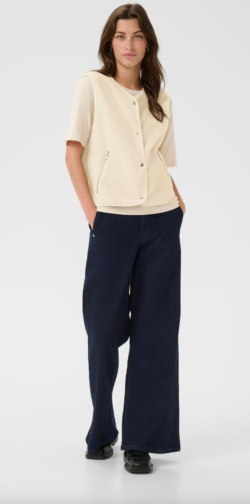 Discover effortless layering with the Part Two Signy Waist—a luxuriously soft teddy fleece vest designed for versatile styling. Featuring practical snap buttons and convenient zipped front pockets, this piece transitions seamlessly from season to season. The relaxed, slightly boxy silhouette works beautifully layered over your favourite tee or tucked beneath a jacket, adding warmth without bulk. Perfect for those in-between weather moments when you need an extra layer that doesn't compromise on style. Comfort meets functionality in this essential wardrobe staple.