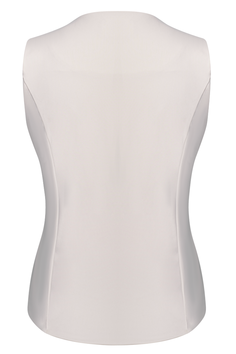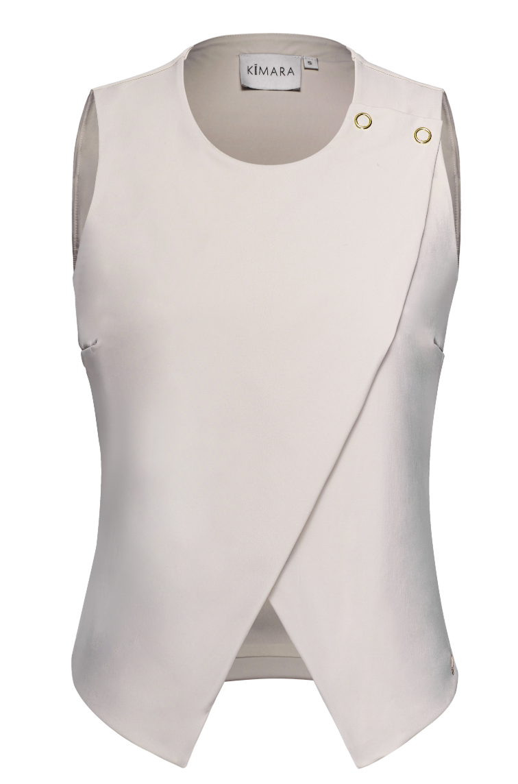 Off White travel fabric top with wrapover detailing and gold hardware.