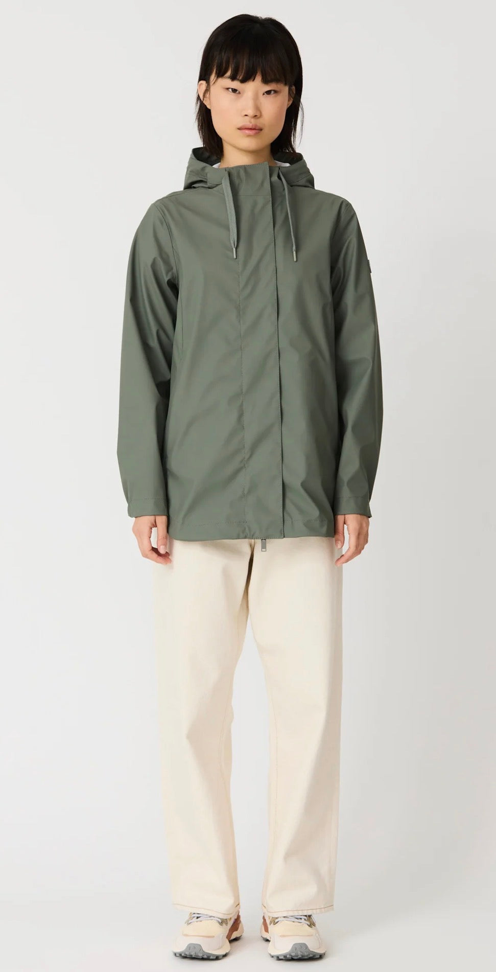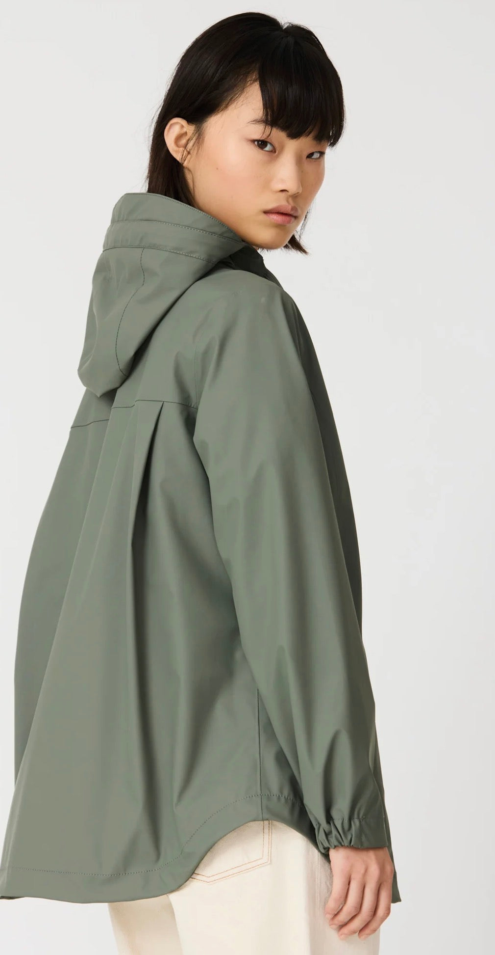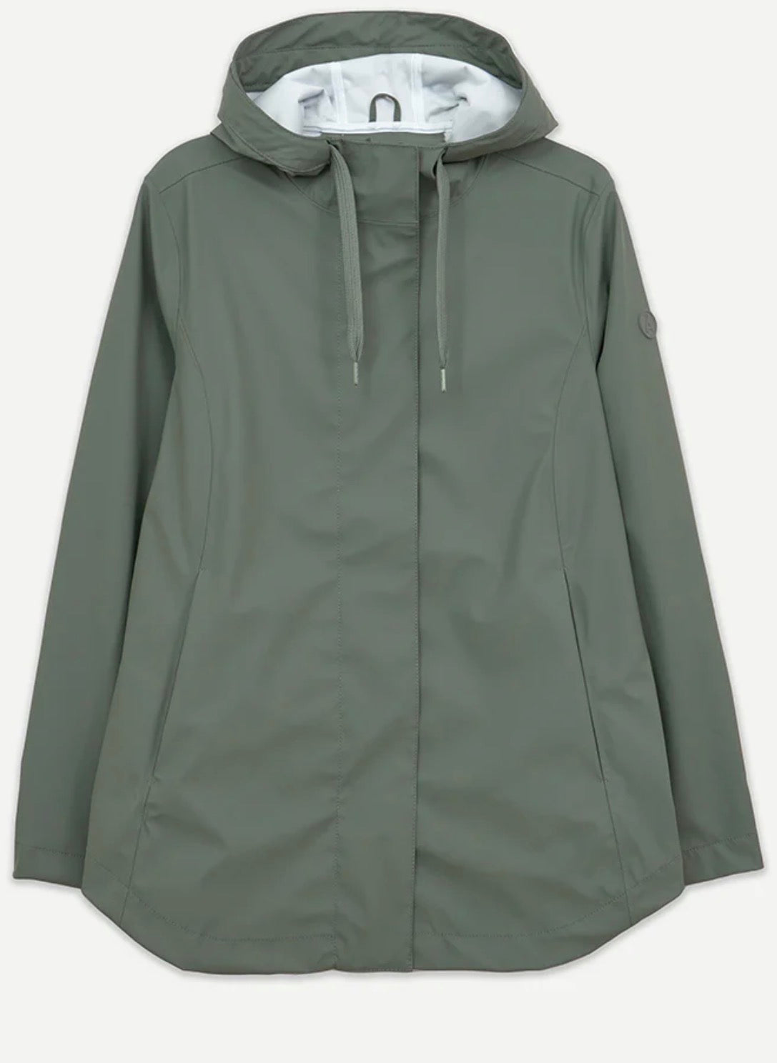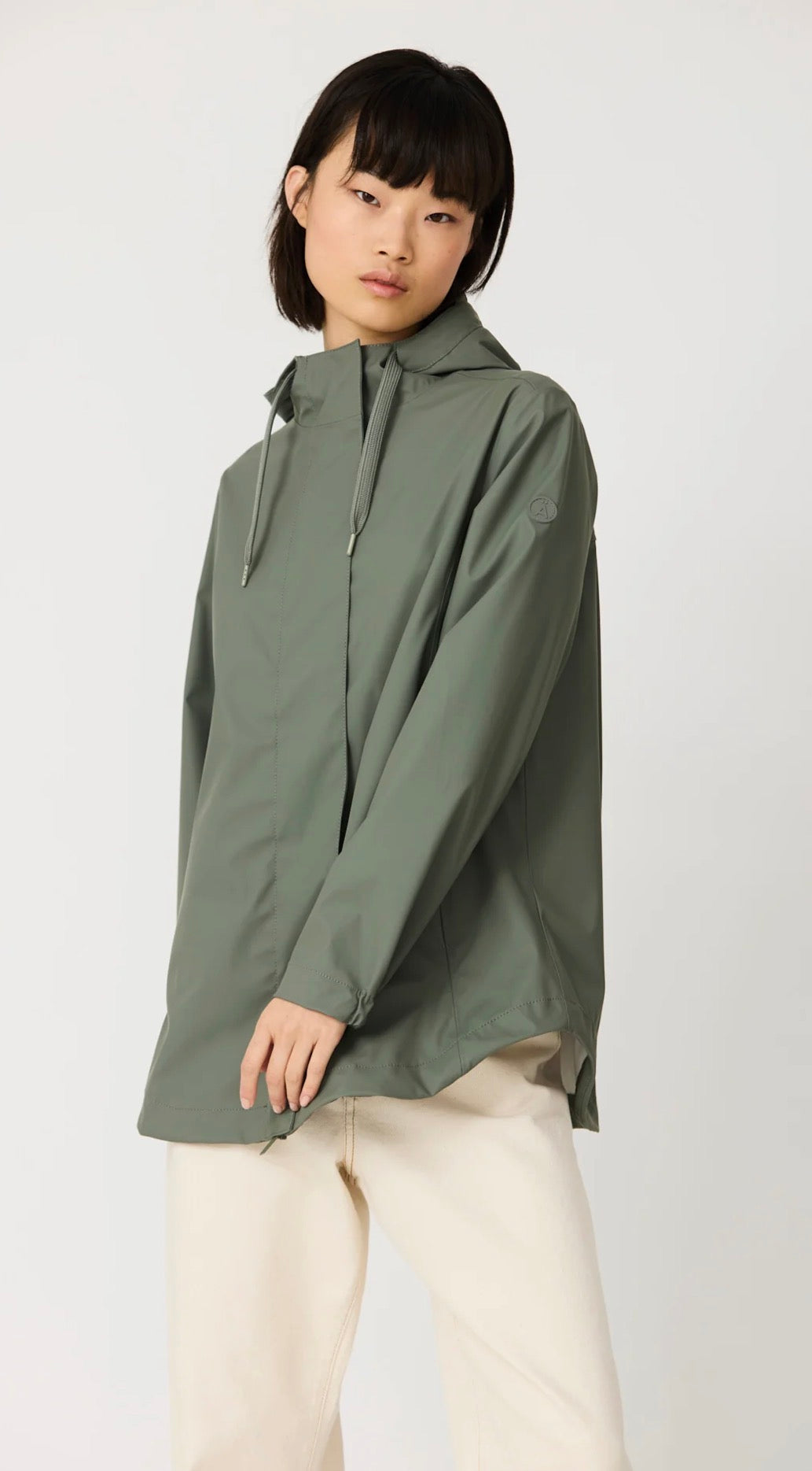 Naiad is a 100% waterproof raincoat made from our iconic polyurethane, with all seams sealed for enhanced protection. Designed with a feminine cut, it features a rounded hem and a back pleat that provide comfort and freedom of movement. A timeless and functional essential for everyday wear on rainy days. 🌧️