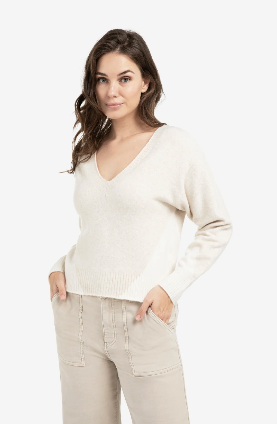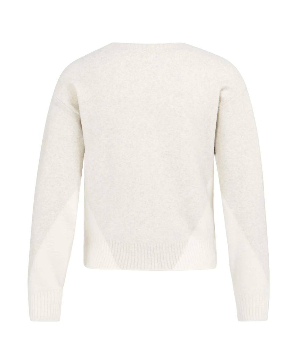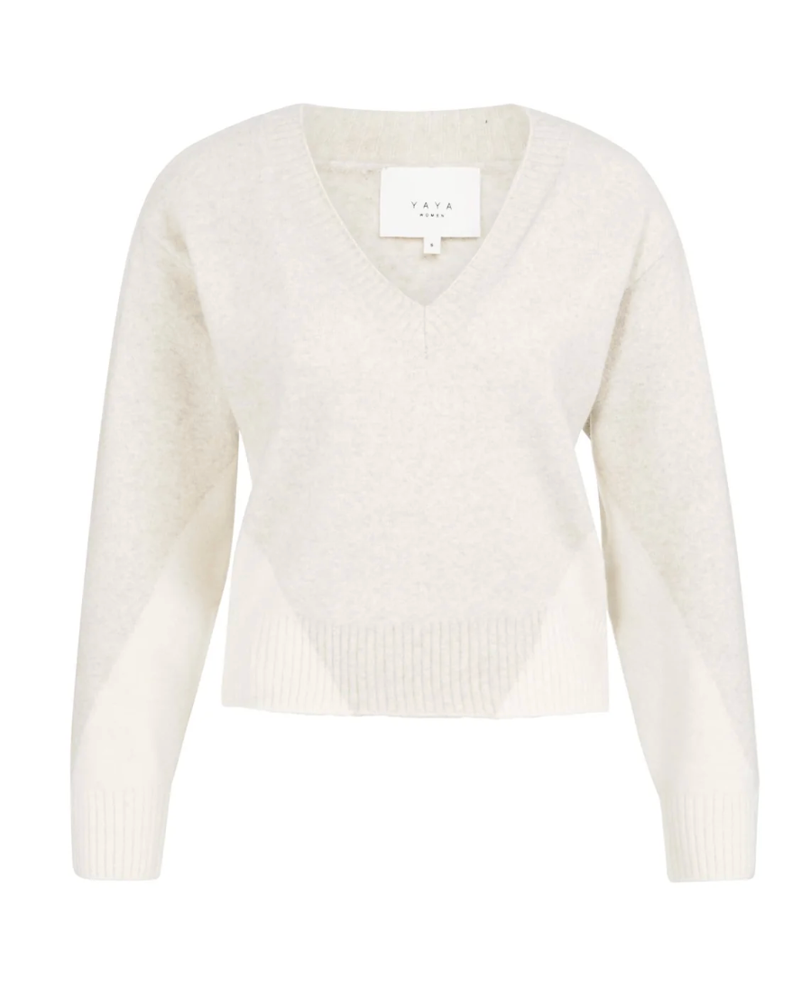 This soft knit sweater features a regular fit, long sleeves and a deep V-neckline. Designed with a subtle tonal colorblock pattern and finished with ribbed cuffs and hem for added structure. A modern and comfortable piece that pairs easily with both casual and refined looks. The model is 178 cm and wears size S.