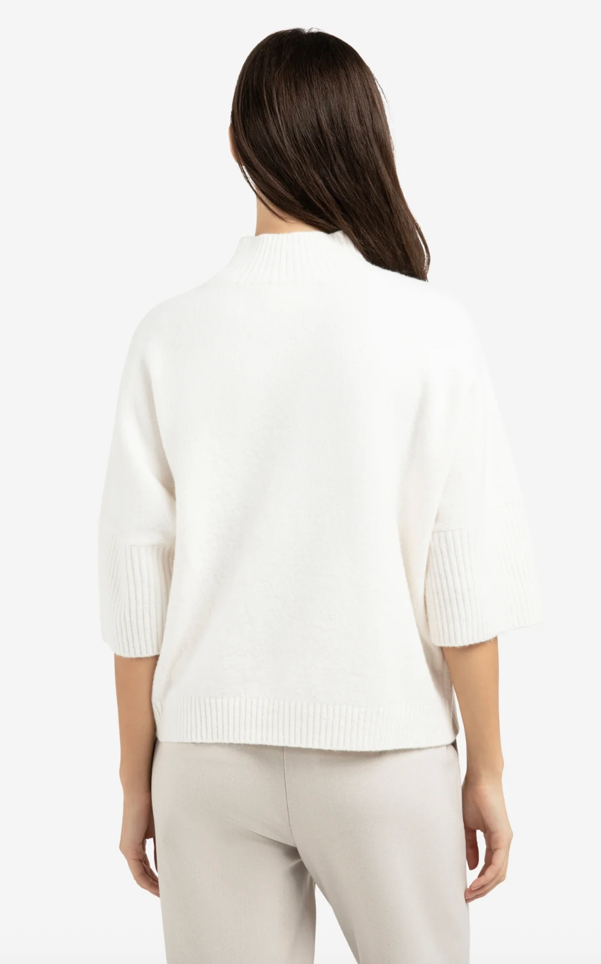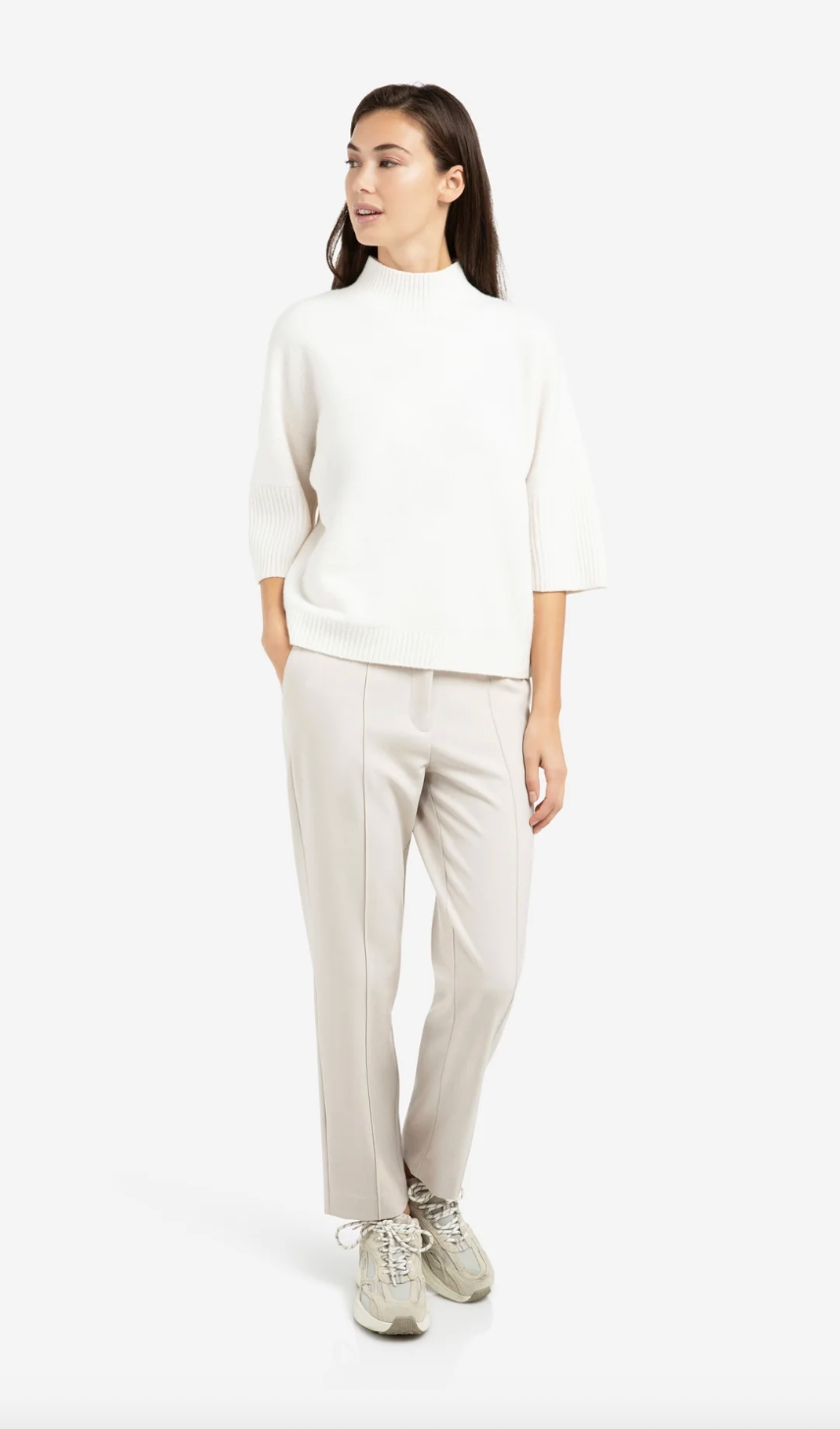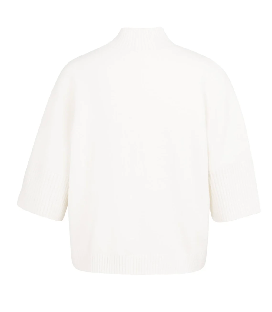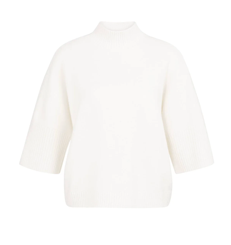 This comfortable sweater features a loose fit, a ribbed mock neck and three-quarter sleeves with wide ribbed cuffs. Made from a soft knit fabric that feels warm against the skin. The minimalistic design and clean finish make it a versatile piece. A stylish addition to your everyday wardrobe for a refined, casual look. The model is 175 cm and wears size S.