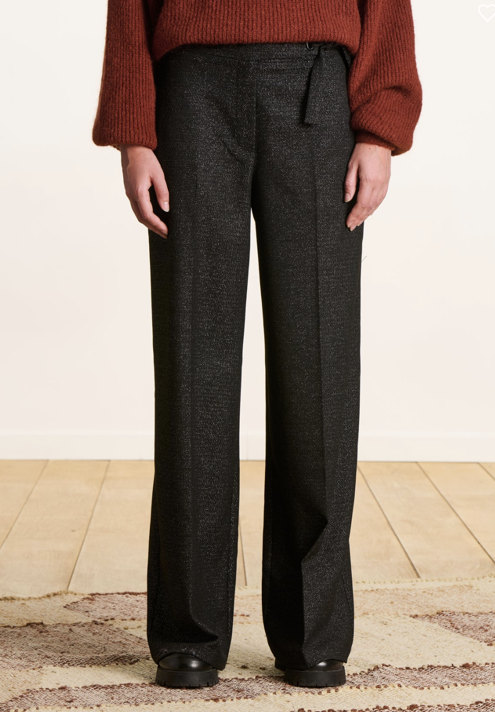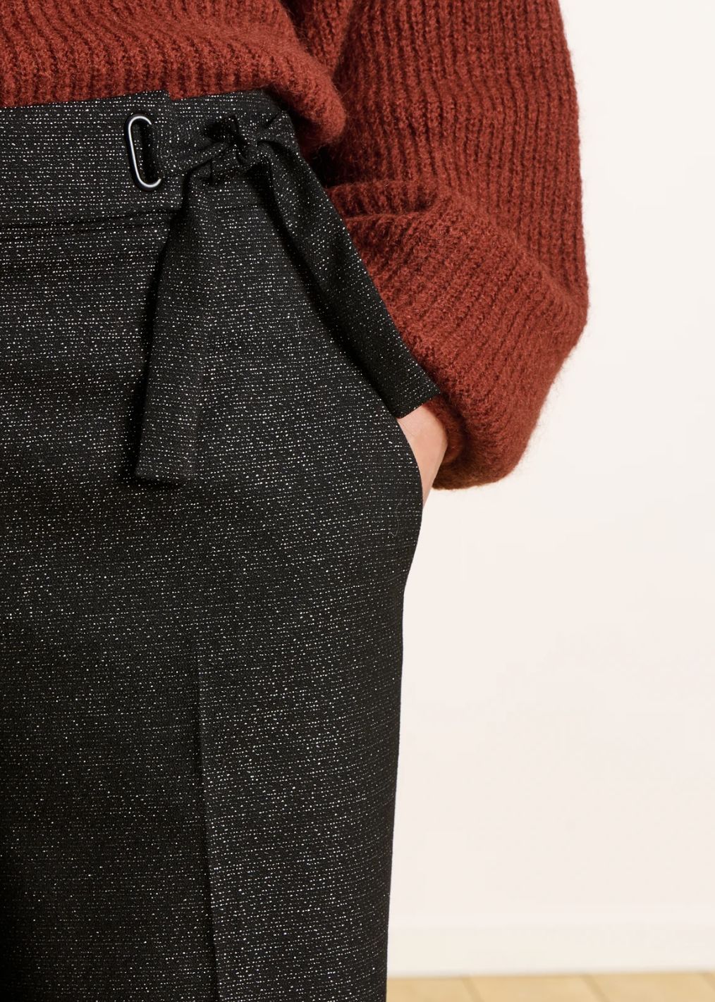Step into effortless elegance with the Faye Black Flecked Trousers. Crafted from a subtly shimmering fabric, these wide and straight leg trousers create a flattering silhouette. Featuring a decorative tie belt and side pockets, they combine style with practicality. Fully lined for comfort, they’re perfect for adding a polished touch to any outfit.