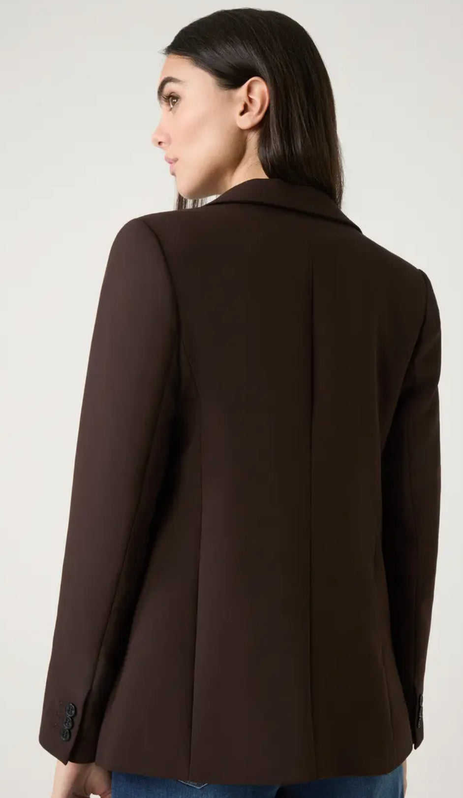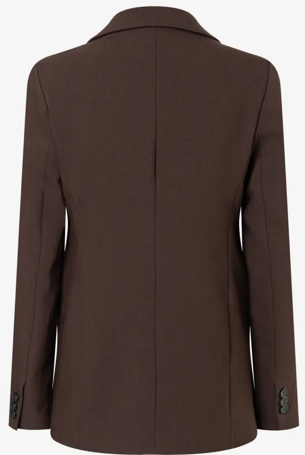 The slightly fitted blazer in ultra-trendy chocolate brown can be paired with matching trousers for a stylish business look. It also goes perfectly with a feminine chiffon dress or casual jeans.