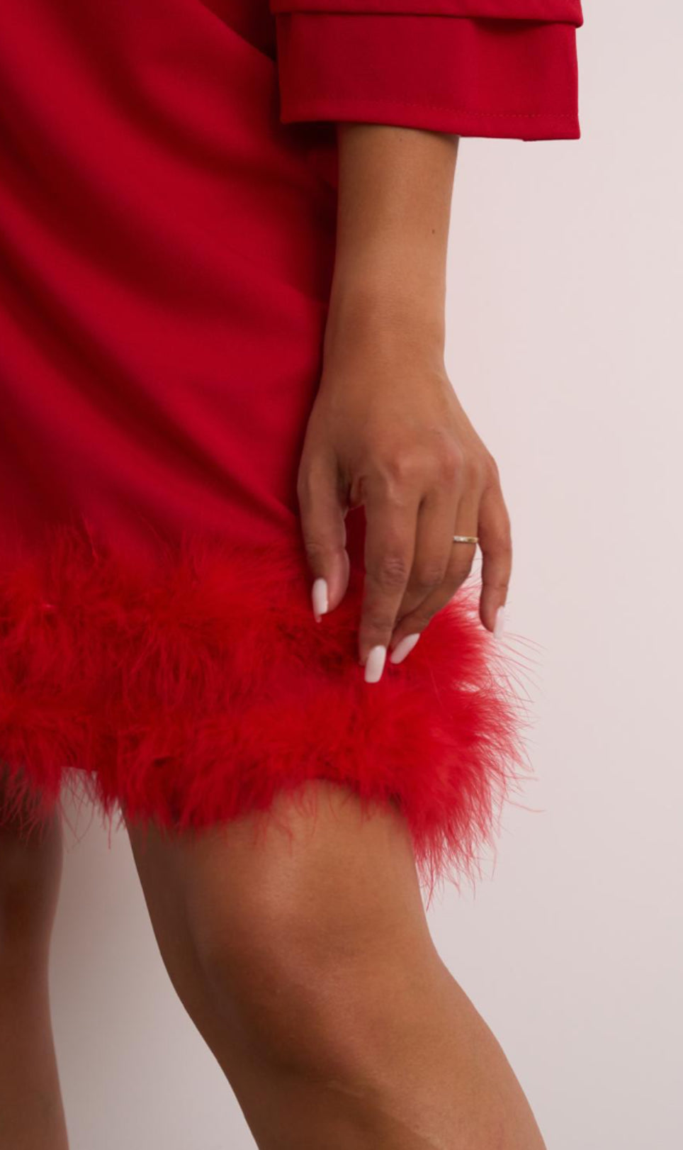 One Size Red Dress with 3/4 sleeeve and feather hem, party time!
